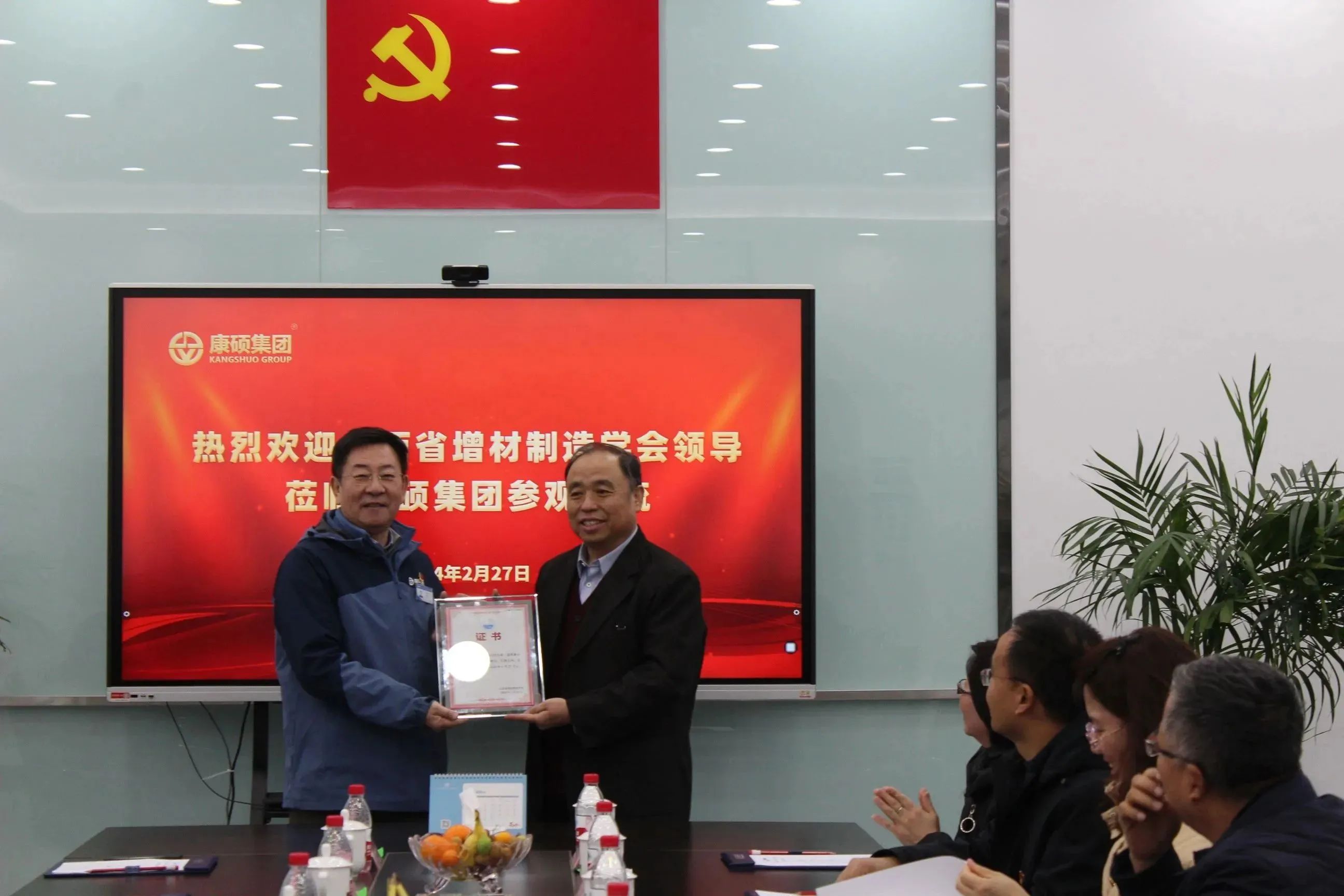 2024年2月27日上午,揭牌儀式在康碩電氣集團(tuán)有限公司舉行。山西省增材制造學(xué)會(huì)理事長(zhǎng)王文先、監(jiān)事長(zhǎng)羅社管等領(lǐng)導(dǎo)蒞臨康碩集團(tuán),康碩集團(tuán)副總經(jīng)理、康碩研究院院長(zhǎng)白龍及相關(guān)人員陪同接待。