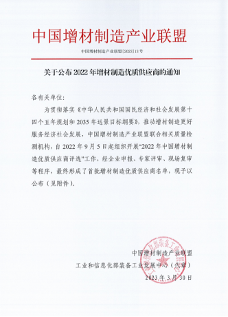 4月6日,中國增材制造產(chǎn)業(yè)聯(lián)盟發(fā)布,為貫徹落實《中華人民共和國國民經(jīng)濟和社會發(fā)展第十四個五年規(guī)劃和2035年遠景目標綱要》要求,推動增材制造更好服務(wù)經(jīng)濟社會發(fā)展,中國增材制造產(chǎn)業(yè)聯(lián)盟聯(lián)合相關(guān)質(zhì)量檢測機構(gòu)組織開展2022年中國增材制造優(yōu)質(zhì)供應(yīng)商評選工作,經(jīng)企業(yè)報名、專家評審、現(xiàn)場復(fù)審等程序,康碩電氣集團有限公司成功入選2022年首批增材制造優(yōu)質(zhì)供應(yīng)商名單。