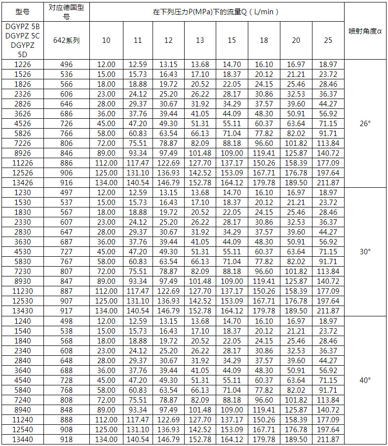 注:XXXX為噴嘴在10MPa下的流量和噴射角度,詳見型號說明。