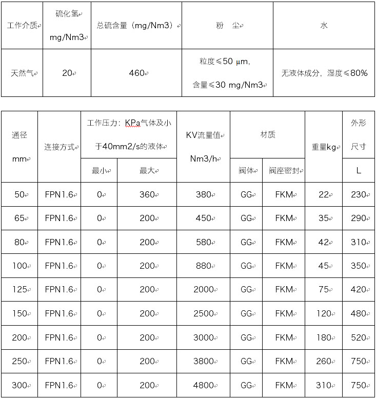 工作介質(zhì):天然氣,天然氣中雜質(zhì)含量見(jiàn)表1;