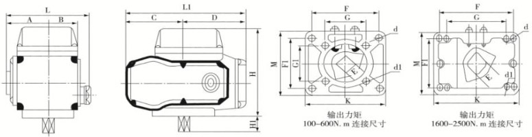 輸出鈕矩100N-m的AMR/AER防爆電動(dòng)執(zhí)行器與輸出扭矩250N-m的電動(dòng)執(zhí)行器外形尺寸相同。