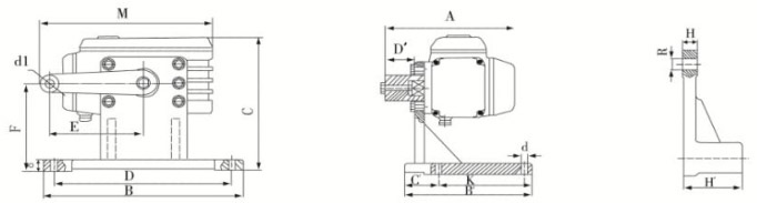 3 AMR/AER 角行程電動(dòng)執(zhí)行機(jī)構(gòu)外形(底座式)(見圖2)及安裝連接尺寸(見表3)