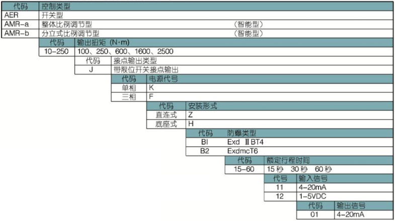 4 AMR/AER系列角行程電動(dòng)執(zhí)行機(jī)構(gòu)標(biāo)準(zhǔn)代號(hào)定義