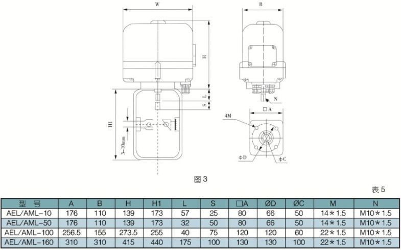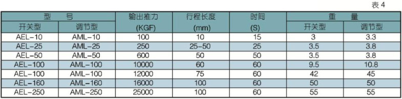 5 AML/AEL系列直行程電動(dòng)執(zhí)行機(jī)構(gòu)規(guī)格型號(hào)及主要技術(shù)參數(shù)表(見表4)