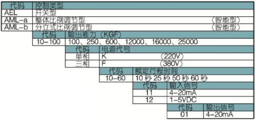 6 AML/AEL系列直行程電動(dòng)執(zhí)行機(jī)構(gòu)標(biāo)準(zhǔn)代號(hào)定義
